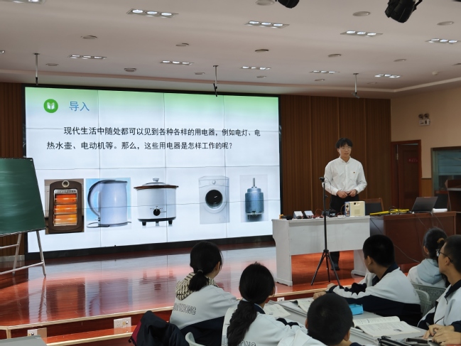 活动的第一节课由附属中学教师杨棋然授课,讲解《高中物理必修三》中《电路的能量转化》,采用“学共体”模式,课前通过任务单布置预习内容,激发学生自主学习兴趣。课堂上,杨棋然老师设计了丰富的实验环节,并结合实例讲解了能量转化的物理原理,生动形象地将抽象的物理概念与学生的日常生活紧密联系,增强了学生的理解和参与感。