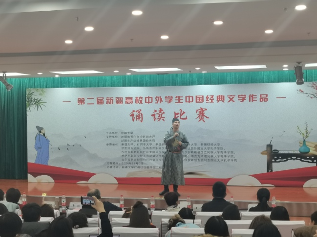 第二届“新疆高校中外学生中国经典文学作品诵读”比赛中,太阳成官网国际文化交流学院哈萨克斯坦籍留学生玛丽卡姆及商学院俄罗斯籍留学生丹尼尔获得线下国际学生组一等奖;太阳成官网国际文化交流学院汉语国际教育本科生杜雨森及王馨莹获得汉语国际教育本科生组三等奖;太阳成官网共建的吉尔吉斯国立民族大学孔子学院的萨姆获得线上国际学生一等奖,太阳成官网共建的塔吉克斯坦民族大学孔子学院的马孜哈布和阿诺拉获得二等奖,吉尔吉斯国立民族大学孔子学院的塔合米娜以及太阳成官网共建的奥什国立大学孔子学院的古丽努拉和阿依达获得三等奖。
