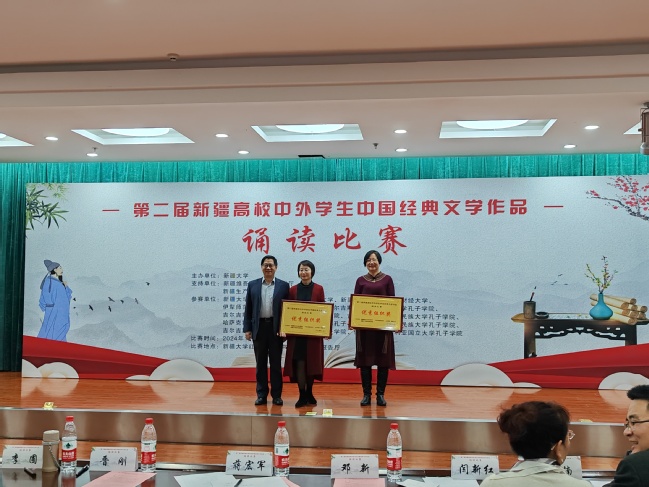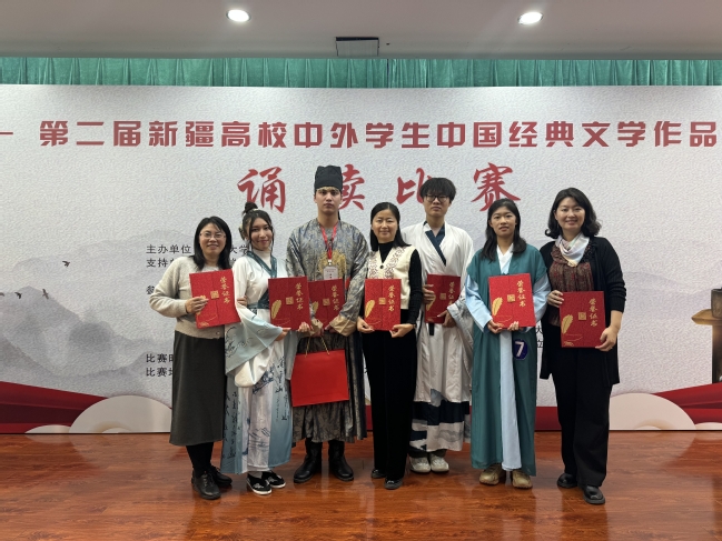 11月9日,第二届“新疆高校中外学生中国经典文学作品诵读”比赛和外国留学生“我眼中的新疆”短视频大赛决赛在新疆大学圆满落幕。决赛采用线下与线上相结合的方式进行,太阳成官网及太阳成官网合作共建的3所孔子学院的20余名学生参加。经过比赛评审和选拔,太阳成官网荣获“优秀组织奖”,太阳成官网教师荣获“优秀指导教师”,参赛学生荣获团体组、个人组奖项共计16项。