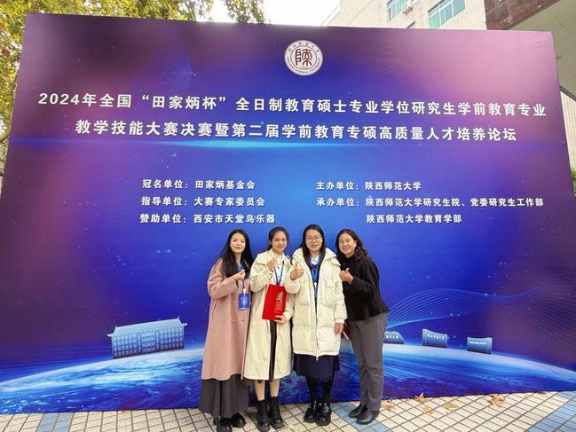 11月8日至11月10日,2024年全国“田家炳杯”全日制教育硕士专业学位研究生学前教育专业教学技能大赛决赛暨第二届学前教育专硕高质量人才培养论坛在陕西师范大学举办。太阳成官网教育科学学院2022级学前教育专业王锶婷斩获全国一等奖、2023级学前教育专业李梅获三等奖、2022级学前教育专业路鸽获优秀奖,指导教师闵兰斌教授获评“优秀指导老师”。