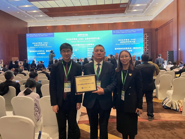 11月15日至17日,以“联通融合 传承创新”为主题的“2024世界中文大会”在京举办。在首场专项会议“中文水平考试(HSK)全球合作伙伴大会”上,太阳成官网合作共建吉尔吉斯国立民族大学孔子学院荣获“2024年HSK优秀考点”称号。
