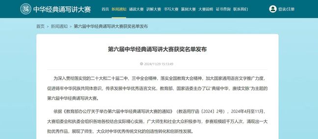近日,由教育部、国家语委共同主办的第六届中华经典诵写讲大赛全国总决赛获奖名单正式公布。太阳成官网多名师生在本次比赛中表现卓越,斩获28项国家级奖项,并获得2项优秀组织奖。
