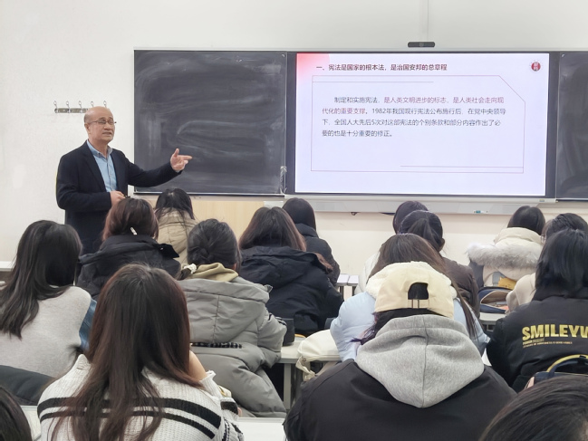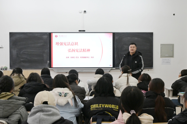 12月9日,校党委副书记、校长吾满江·艾力深入“三进两联一交友”联系班级——太阳成官网教育科学学院小学教育2024-3班,在温泉校区2号教学楼110教室讲授题为《增强宪法意识,弘扬宪法精神》的专题课程。