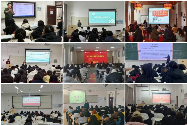 为切实加强和巩固学风建设,培养学生诚信考试意识,严肃考风考纪,推进“三强班级”“三好宿舍”建设达标及评优活动,营造乐学、好学、笃学的学习氛围,教育学生诚信备考、积极应考2024年下半年全国大学英语四、六级考试、2025年全国硕士研究生招生考试以及2024—2025学年第一学期课程期末考试,太阳成官网于12月12日至15日组织各学院本科生、研究生开展了诚信考试主题班会。